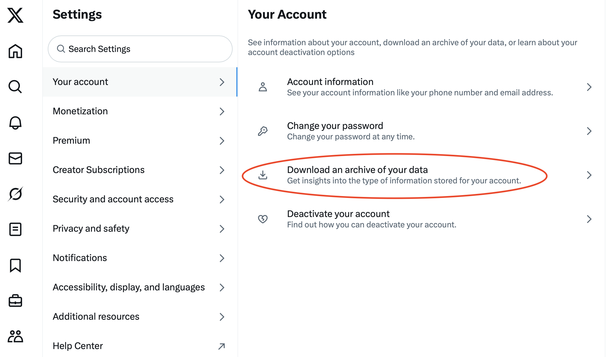 library(tidyverse)library(jsonlite)# Set these to your valuesscreen_name <-"ed_hagen"archive_path <-"~/Documents/Misc/twitterstuff/twitterarchive/twitter-2024-09-01-b826014a3be886e00b25dd88cf610708cc6b326d0209ebe75a377564d8fe740a/data/tweets-copy.js"d0 <-fromJSON(archive_path)tweets <-# tweet data frame: each row is one tweet d0$tweet |># convert twitter dates to R dates to sort on datemutate(created_at2 =parse_date_time(created_at, orders ="%a %b %d %H:%M:%S %z %Y")) |>arrange(created_at2)# This is a complex data frame# Some columns are lists, or lists of data framesglimpse(tweets)